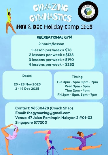 The Gymazing Gymnastics Holiday Camp is designed for kids aged 4 and above.